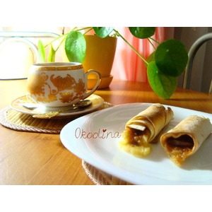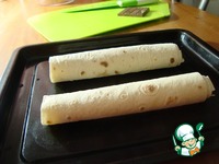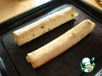 Закручиваем рулетиком и выкладываем на противень. Ставим в разогретую духовку на 3 минуты при т-180 С |