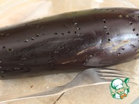 Баклажан промыть, обсушить и проколоть в нескольких местах вилкой. |