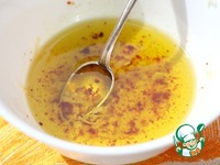 Сделать заправку: смешать оливковое масло с чесноком, солью и перцем чили. |