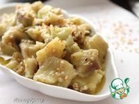 Заправить баклажаны, перемешать. Посыпать поджаренным на сухой сковороде кунжутом. |