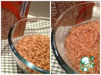 Сверху выкладываем подготовленные гречневые хлопья, |