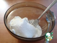 Творог выкладываем в чашку, насыпаем сахар, соль и вилкой соединяем. |