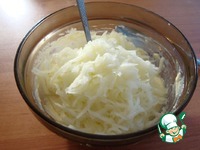 Натираем кабачок на тёрке и добавляем к творогу. Вилкой перемешиваем. |