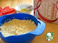 Теперь можно заняться хлопьями. Я выбрала пшенные хлопья от ТМ "Мистраль". Они отлично подходят для каш и запеканок. Заливаем их горячей водой, даем им немного настояться. |