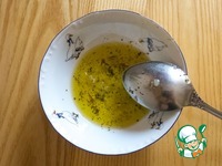 Приготовим соус. Смешиваем оливковое масло, выдавленный чеснок и любимые травки. |
