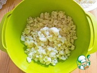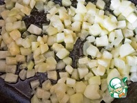 Кабачок нужно почистить, нарезать небольшими кубиками и жарить на сливочном масле 4-5 мин. |
