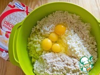 Итак, к капусте добавляем сыр, творог, кабачки, овсянку и яйца. На фото 4 яйца, т. к. у меня двойная порция. Всё перемешиваем и солим по вкусу! При желании добавляем любимые специи. |