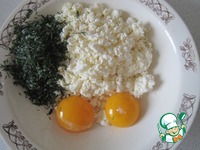 Творог, желтки и укроп перемешиваем, солим |