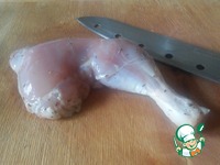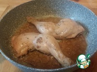 Время: в таком виде она пролежала у меня 12 часов. В принципе, пары-тройки часов ей хватит - курица быстро маринуется, но я люблю, когда мясо в маринаде подольше. |