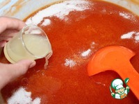 Затем добавляем оставшийся сахар, сок лайма и варим еще 10 минут. |