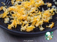 2. Одновременно очистить и мелко нарезать лук, морковь натереть на крупной терке. На половине сливочного масла обжарить лук и морковь до золотистого цвета. |