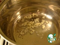 В кастрюле нагреть масло и несколько минут обжарить чеснок на небольшом огне. |