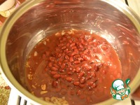 К чесноку добавить 1 банку фасоли с жидкостью, размять вилкой. Можно погружным блендером. |