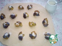 На одну часть раскатанного теста выкладываем сливы и посыпаем немного сахаром (так как показано на картинке) |
