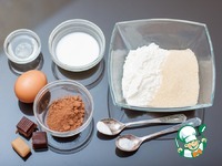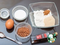 Смешиваем муку, сахар, растворимый кофе, какао-порошок и разрыхлитель. Добавляем молоко, яйцо, растительное масло и ванилин. |
