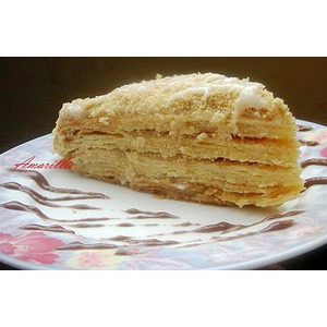 Яблочная прослойка: Яблоки очистить и натереть на терке. Растопить 2 ст. л сливочного масла, выложить яблоки, добавить 0,5-3/4 ст. сахара, перемешать и тушить до готовности. Пройтись толкушкой, чтобы было мягкое, нежное пюре. Остудить. Коржи: Замороженное масло натереть на терке. Всыпать муку и руками перетереть в крошку, добавить 1 ст. л. сахара, щепотку соли. Размешать. Добавить размятый творог (или творожные ванильные сырки по 100 г.) и 3 желтка. Замесить тесто. Придать форму колбасы, убрать в п/э пакет и положить в холодильник на верхнюю полку на 2 часа. Разогреть духовку до 180С. От теста отрезать кусок (остальное в холодильнике), который раскатать в корж (слегка обсыпая мукой кусок теста и скалку). Я раскатываю коржи на силиконовом коврике и на большом силиконовом круге для пиццы. Выпекать до легкого зарумянивания. Получается 8-10 коржей. Белковая прослойка: Сварить густой сироп из 1/4 ст. воды и 6 ст. л сахара. Взбить 3 белка до густой пышной пены (белки должны хорошо держать форму). Продолжая взбивать, влить сахарный сироп, быстро перемешать сироп со всей массой и взбивать еще пару минут. Сборка: Коржи (кроме верхнего) прослаивать поочередно яблочной и белковой прослойкой. На верх поставить груз и убрать в холодильник на пропитку на ночь. Ровно обрезать края торта или вырезать какую-либо форму.