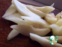 Очистить груши от кожуры, удалить сердцевину и разрезать вдоль на 6-8 частей. |