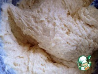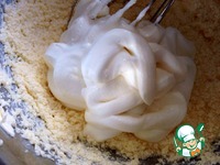 Муку просеять с разрыхлителем. И постепенно добавляя к жидкой массе, приготовить тесто. |