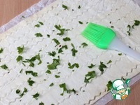 Смазываем тесто взбитым белком, можно посыпать зеленью. |