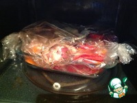 В форму для запекания выкладываем пакет с курочкой и отправляем на 20 мин. в СВЧ на мощности 800 ватт |