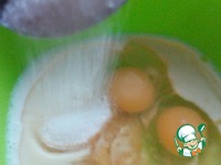 В миске смешать мёд, сахарную пудру, соль, разрыхлитель ( или соду), молоко, растительное масло, крахмал и яйцо. |