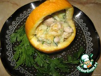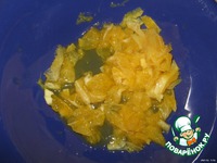 Мякоть апельсина по возможности отделяем от плёнок и конечно же от косточек. Нарезаем. |