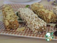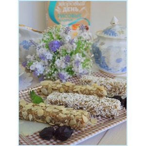Нарезать массу на брусочки и обвалять часть в кокосовой стружке, а часть в миндальных лепестках. Подавать к чаю! А можно такой батончик завернуть в бумагу и взять с собой в дорогу, на перекус. |