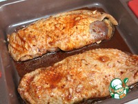 Утиные грудки необходимо замариновать. Используем соевый соус Kikkoman. |