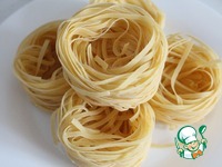 Пасту, я использовала гнезда, отвариваем согласно инструкции. |