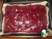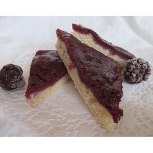 Ближе к концу выпекания нужно приготовить сироп. Залить жмых от ежевики 250 мл воды, добавить 2,5 столовых ложек тростникового сахара, столовую ложку сока лимона. Поставить на огонь. Уваривать на среднем огне, помешивая, до небольшого загустения. Процедить через сито. Вынуть выпечку из духовки и протыкать обратной стороной палочки для шашлычков достаточно часто.. Затем аккуратно столовой ложкой поливать горячим сиропом всю поверхность горячей же выпечки. Можно даже распределить ложкой, касаясь теста. И оставить остужаться. |