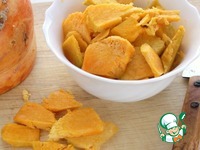 Тыкву вымыть, очистить, нарезать тонкими ломтиками. |