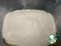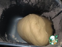 Просеиваем туда 400гр муки, добавляем сахар (75гр), ванилин и дрожжи. Закрываем крышку, ставим программу "Тесто" и нажимаем на Пуск. Можно забыть про тесто на полтора часа :) |
