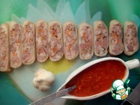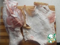 Теперь займемся начинкой. С рульки нужно срезать максимальное кол-во мяса. Размер кусочков не так важен, можно резать так, как получится, будет более красиво, если структура будет разной. |