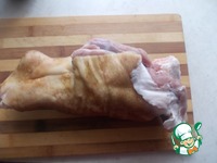 Берем свиную рульку, размер не имеет значения, чем больше рулька, тем больше будет ветчины. У меня была немного смаленая соломкой, если вы такую найдете, будет замечательно. Она более ароматна. |