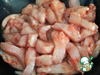 2 ст. л. соевого соуса смешиваем с паприкой и добавляем курицу. Оставляем на 10 - 20 мин. |