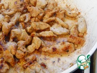 На сковороду наливаем подсолнечное масло, хорошенько раскаливаем. Выкладываем мясо на сковороду и обжариваем при постоянном помешивании до румяного цвета. Готовое мясо убираем на тарелку. |