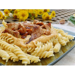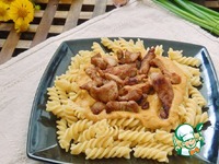 Когда макароны сварятся, откидываем их на дуршлаг, затем в миске добавляем к ним немного сливочного масла. Подаем, полив соусом и выложив сверху мясо. |
