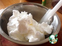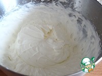 Взбить сливки с сахарной пудрой до тугих пиков, добавить мягкий творог без крупинок, хорошо перемешать. |