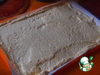 Желатин залить 100 мл воды, растворить на водяной бане, немного остудить и вмешать в крем. Крем поставить в холодильник на несколько минут, чтобы он начал густеть. |