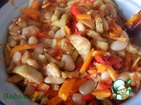 Первым делом отвариваем фасоль. И до использования оставляем ее в воде. Иначе, если слить воду, фасоль потеряет свой внешний вид - станет такой сморщенной. |