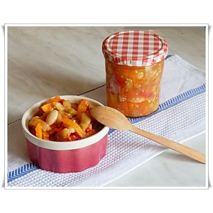 Закатать в стерилизованные банки, укутать до остывания. Из этого количества продуктов у меня получилось две банки по 500 мл и две банки побольше (примерно 600 и 800 мл.) |