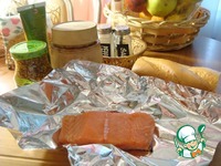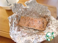 Рыбу укладываем в фольгу, перчим, солим, заворачиваем и отправляем в духовку на 15 минут при т-180-200 С. |