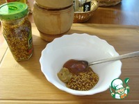 Делаем намазку на багет. Соединяем мёд и 2 вида горчицы в однородную массу. |