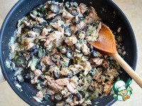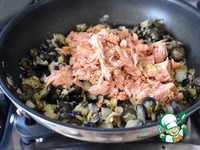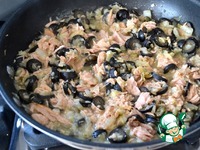 Слить лишнее масло с тунца и добавить в сковороду к овощам... |