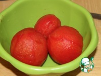 С помидоров снять кожицу (для этого их нужно проколоть викой и ошпарить кипятком). |
