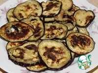 Баклажаны смажем оливковым маслом, разложим на противень и запечем при 200*С 20 минут. |