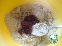 Предварительно отваренную свеклу размять удобным для Вас способом, я просто натёрла на мелкой тёрке. |