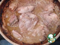Увеличиваем температуру до 200 градусов и запекаем без крышки. Я держала в духовке еще 30 минут, чем дольше, тем темнее корочка и гуще соус - регулируйте на свое усмотрение. |