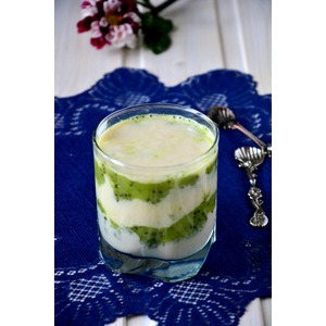 В стакан налейте слой бананового смузи, затем при помощи ложки выложите слой пюре из киви. Повторите слои. Приятного аппетита! |