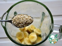 Бананы нарежьте колечками и поместите в чашу блендера. Туда же добавьте мед и овсяные хлопья. |